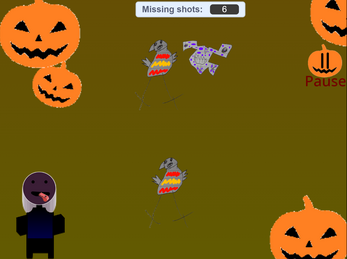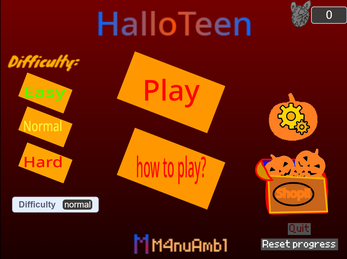 Halloteen is a simple and straightforward 2D arcade game, based on a single clear mechanic: throwing pumpkins at waves of enemies to survive as long as possible.